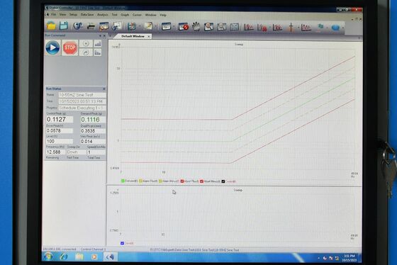 O teste de vibração é o ato de excitar ou chocar um componente ou dispositivo para ver como ele reagiria em um ambiente real.de produtos industriais, tais como placas de circuito, aeronaves, navios, foguetes, mísseis, automóveis e aparelhos domésticos.