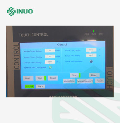 The pulling function is performed by a single-phase variable-speed motor that operates an eccentric mechanism, with adjustable motor speed to guarantee precise timing for each applied pull force. Torque is generated by an air cylinder that releases a calibrated torque weight, ensuring consistent and accurate torque measurement.