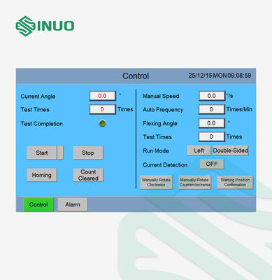 | Ciclos de dobra | 0-999,999 presetável (padrão 20.000 ciclos) |